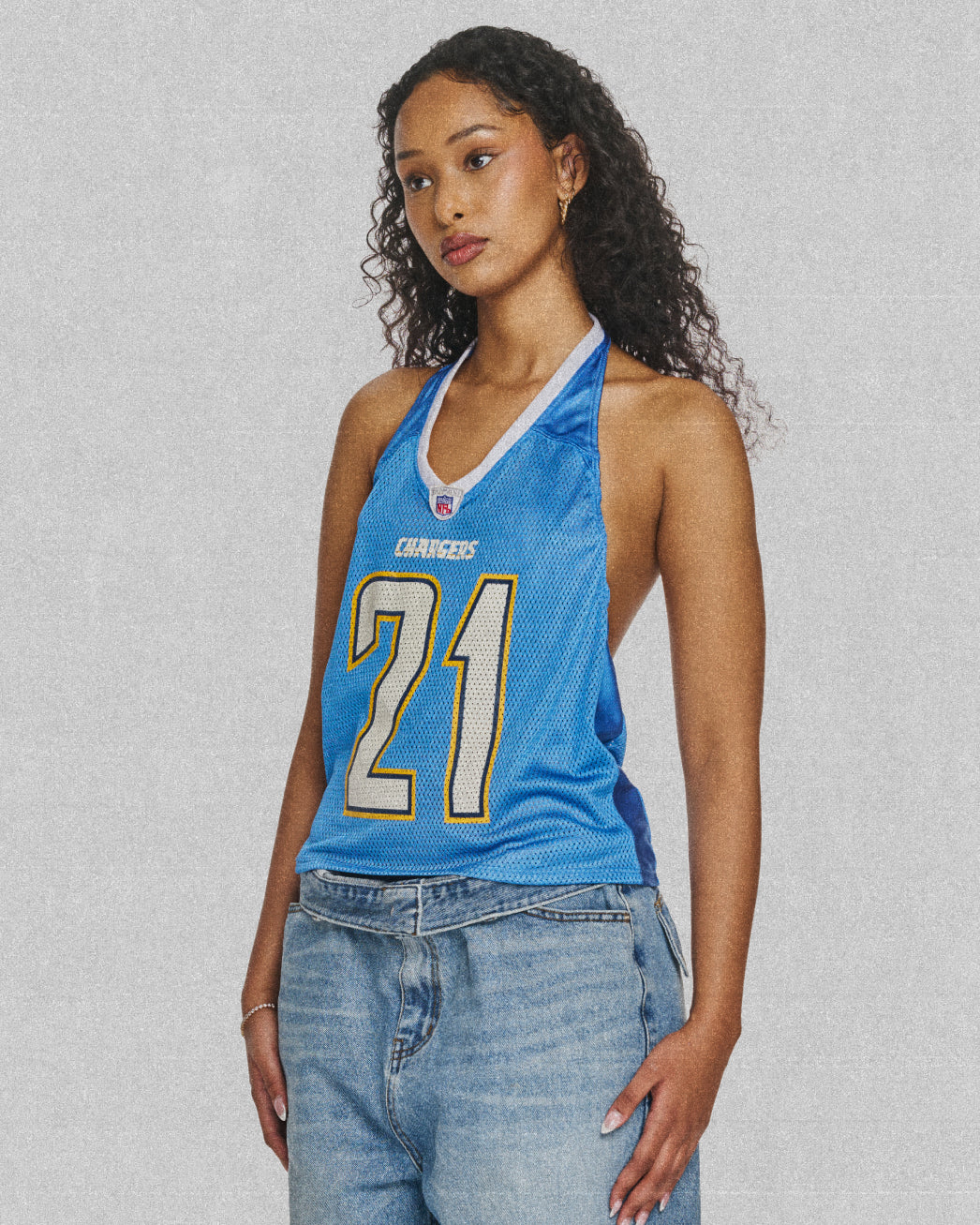 Relaxed slip style dress with adjustable spaghetti straps. 80's deadstock lace trim detail. Upcycled from a NFL jersey and mesh lined.